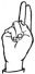 На ћирилици написано МИЛОШ ЈОВАНЧЕВИЋ састоји се из 15 слова [?]. Исписано ћириличном једноручном азбуком за глувонеме:
